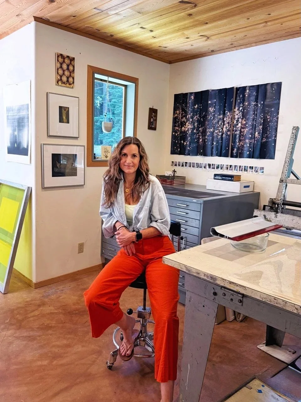 Sanford is a faculty member in the Art department at University of California Santa Cruz. She holds a Masters in Fine Art in Printmaking from the Edinburgh College of Art, Scotland and a Bachelor of Science in Arts Education from the joint program of Case Western Reserve University & The Cleveland Institute of Art. Her professional memberships are currently with People of Print, Southern Graphics Council International and Los Angeles Printmakers. She works out of her studio amongst the redwoods of Bonny Doon, CA nestled in the Santa Cruz Mountains.